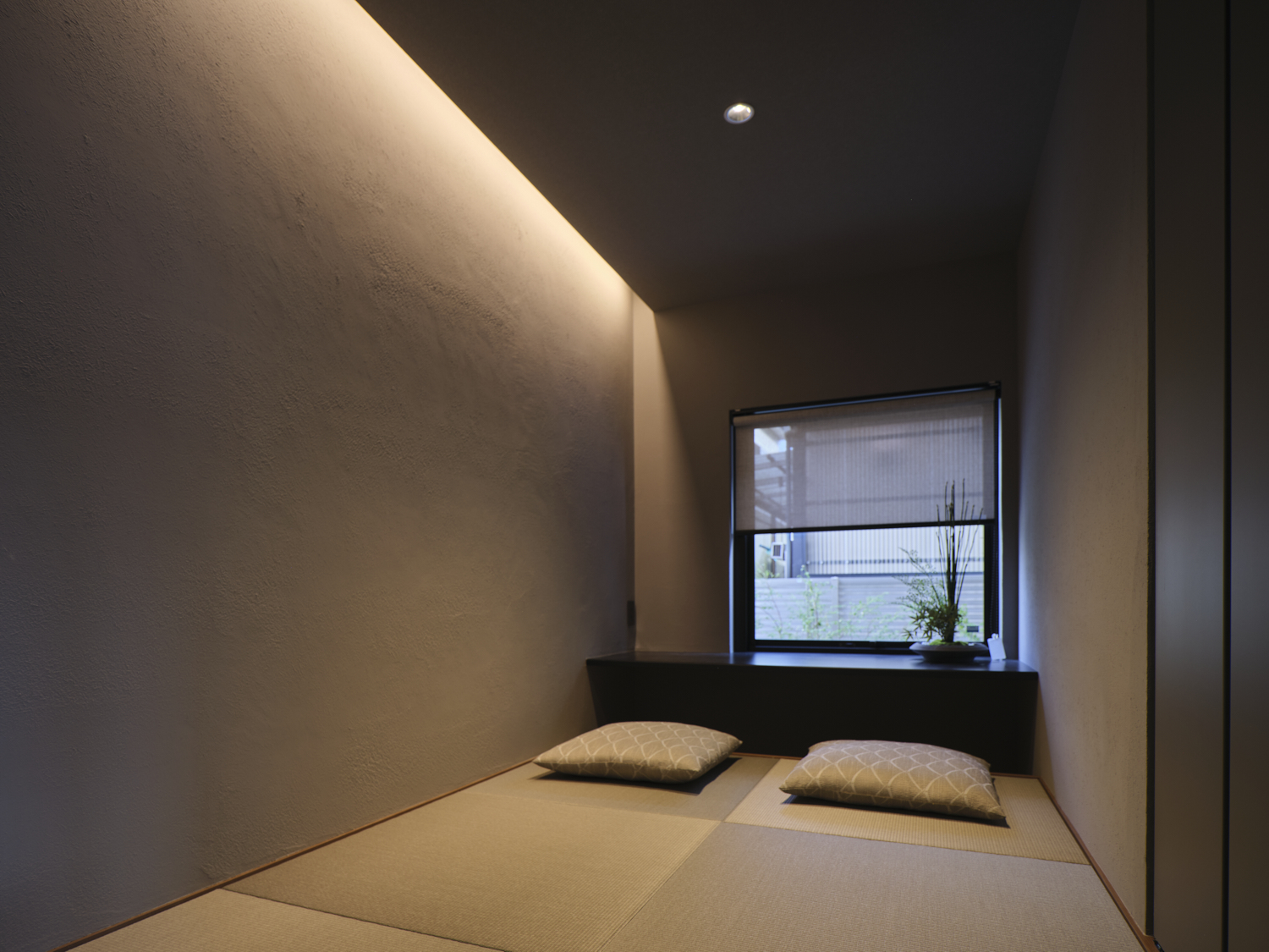 和室や寝室は、余白を活かした静の空間。照明を極力抑え、陰翳の美しさを引き出すことで、心が自然と落ち着く居場所となりました。